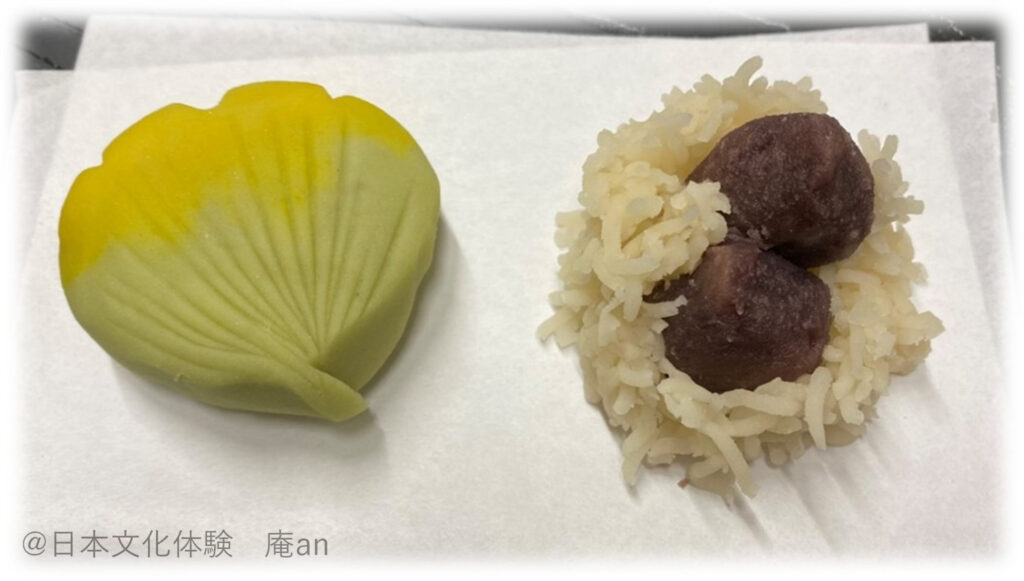 本日より練り切り和菓子の題材が「銀杏(イチョウ)」、「栗(くり)」になりました。