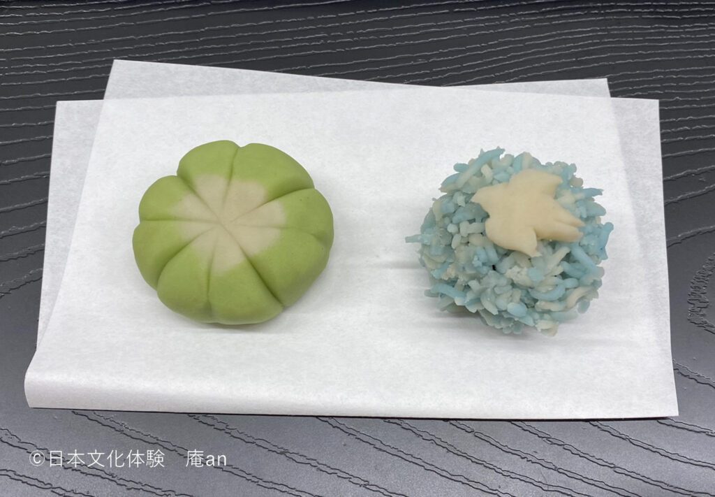今回の和菓子の題材は、青空を飛び交うつばめと四つ葉のクローバーです。